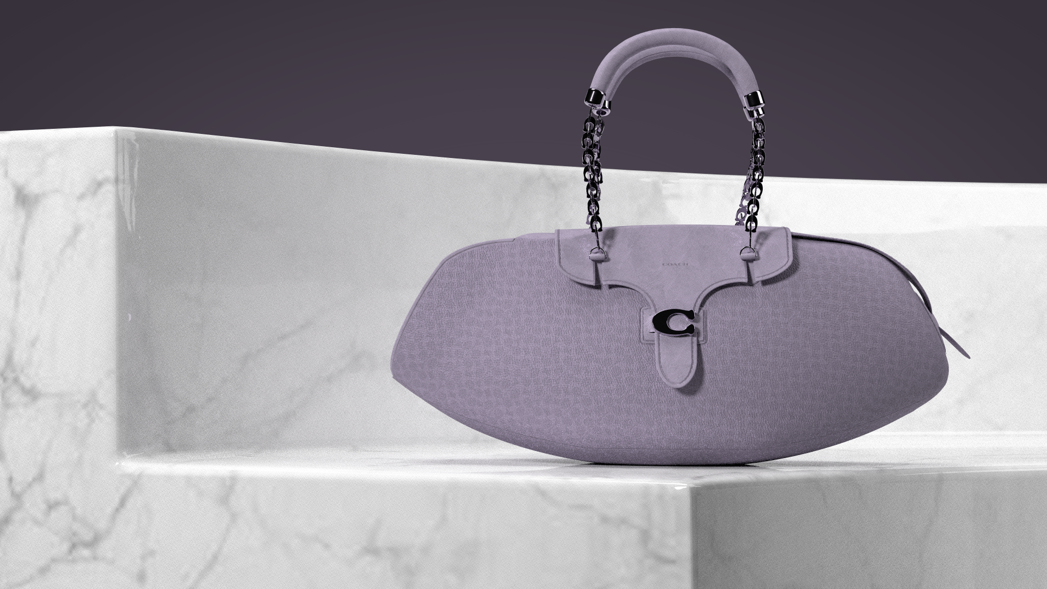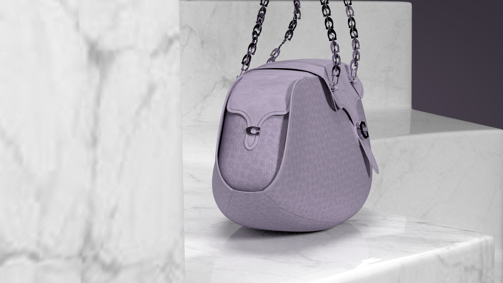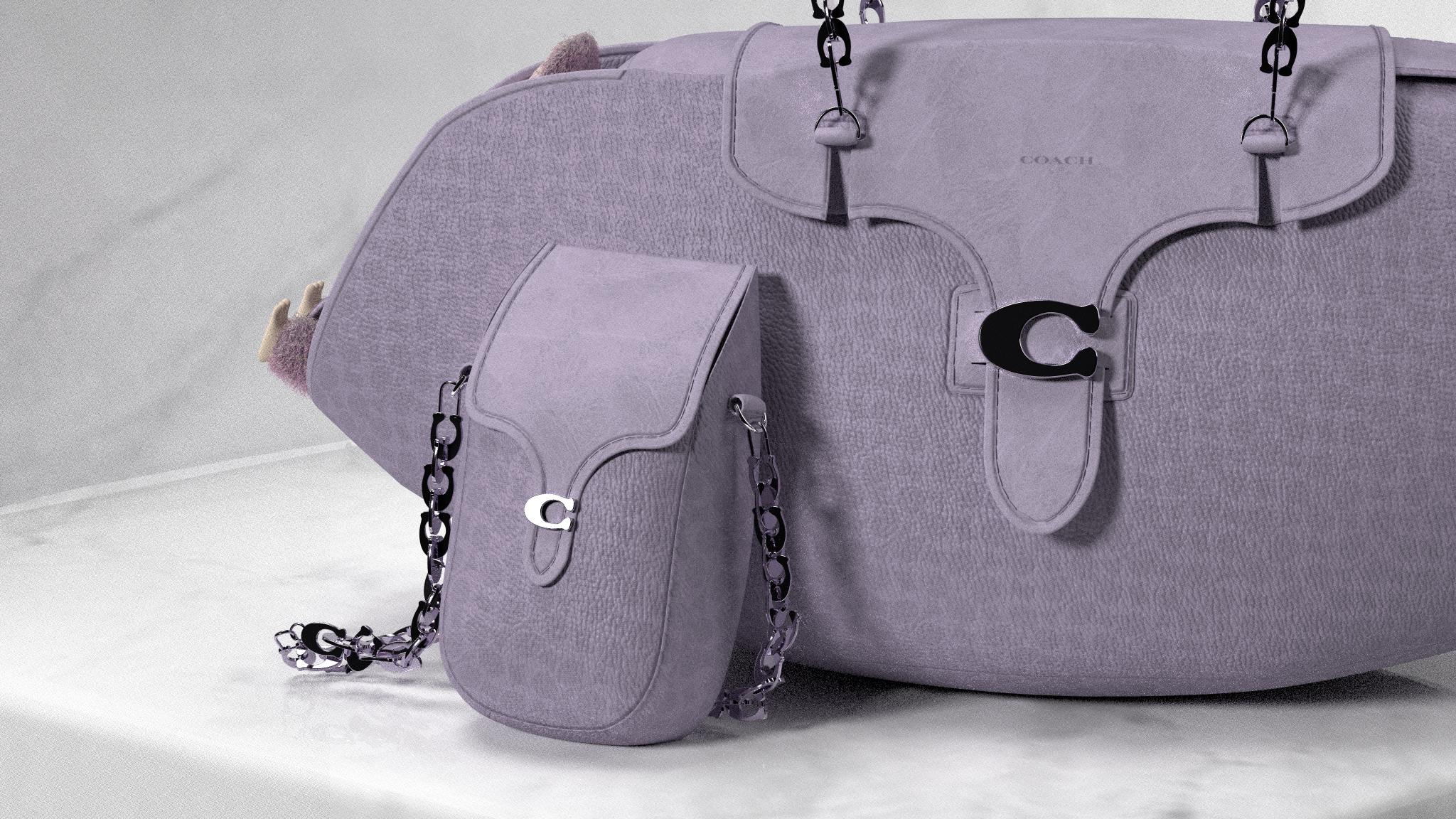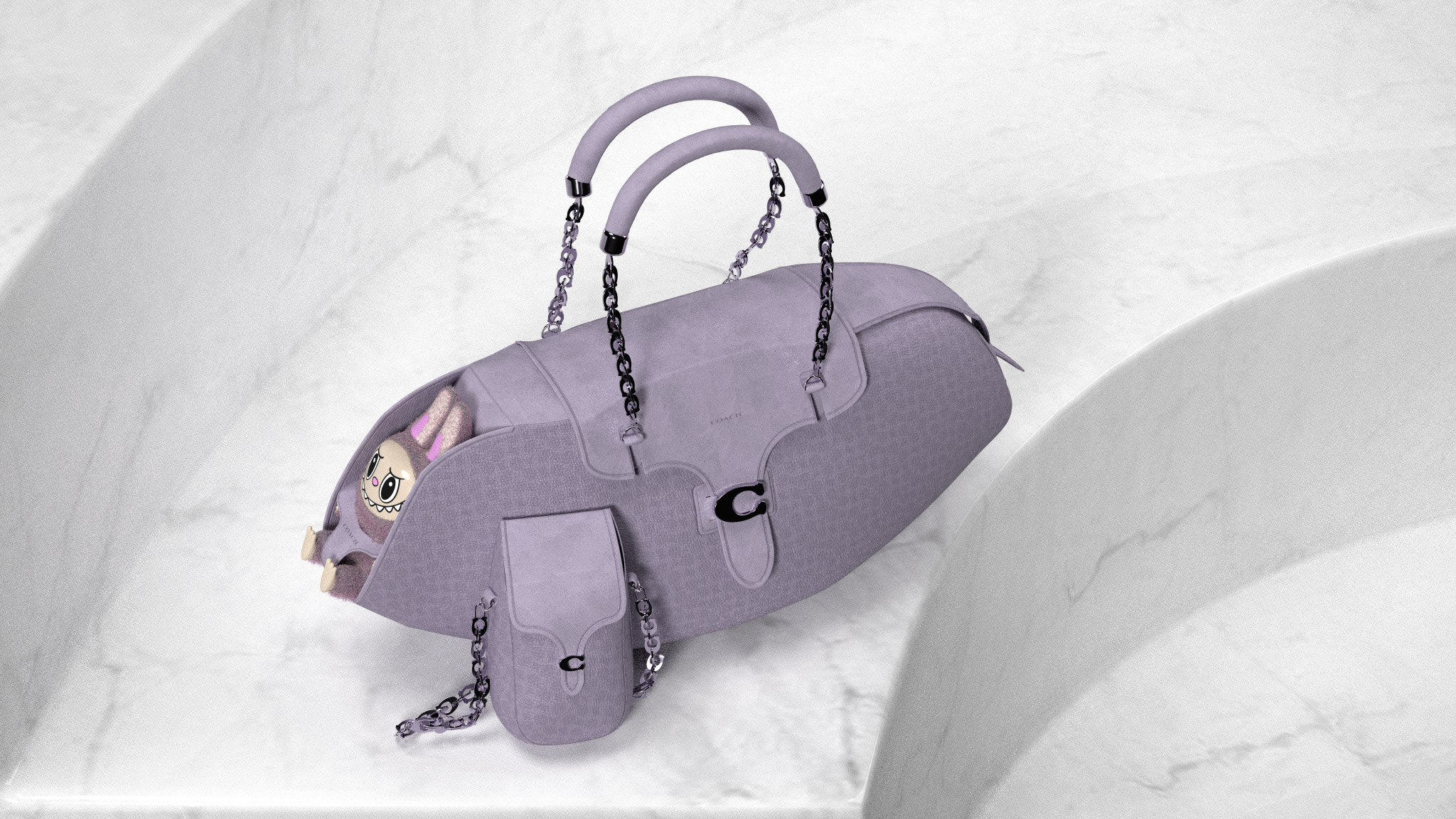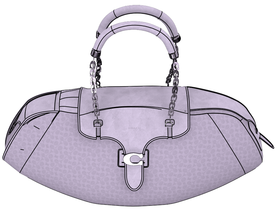 Design nods to Coach archives include tab closures referencing the Dinky Shopping Bag and proportions inspired by the Chunky Shoulder Bag. The flattened interpretation of classic bubble C hardware offers a modern touch. Created in CLO 3D for Coach Play's digital customization platform, the design balances brand heritage with Gen Z preferences for versatile, shareable accessories.